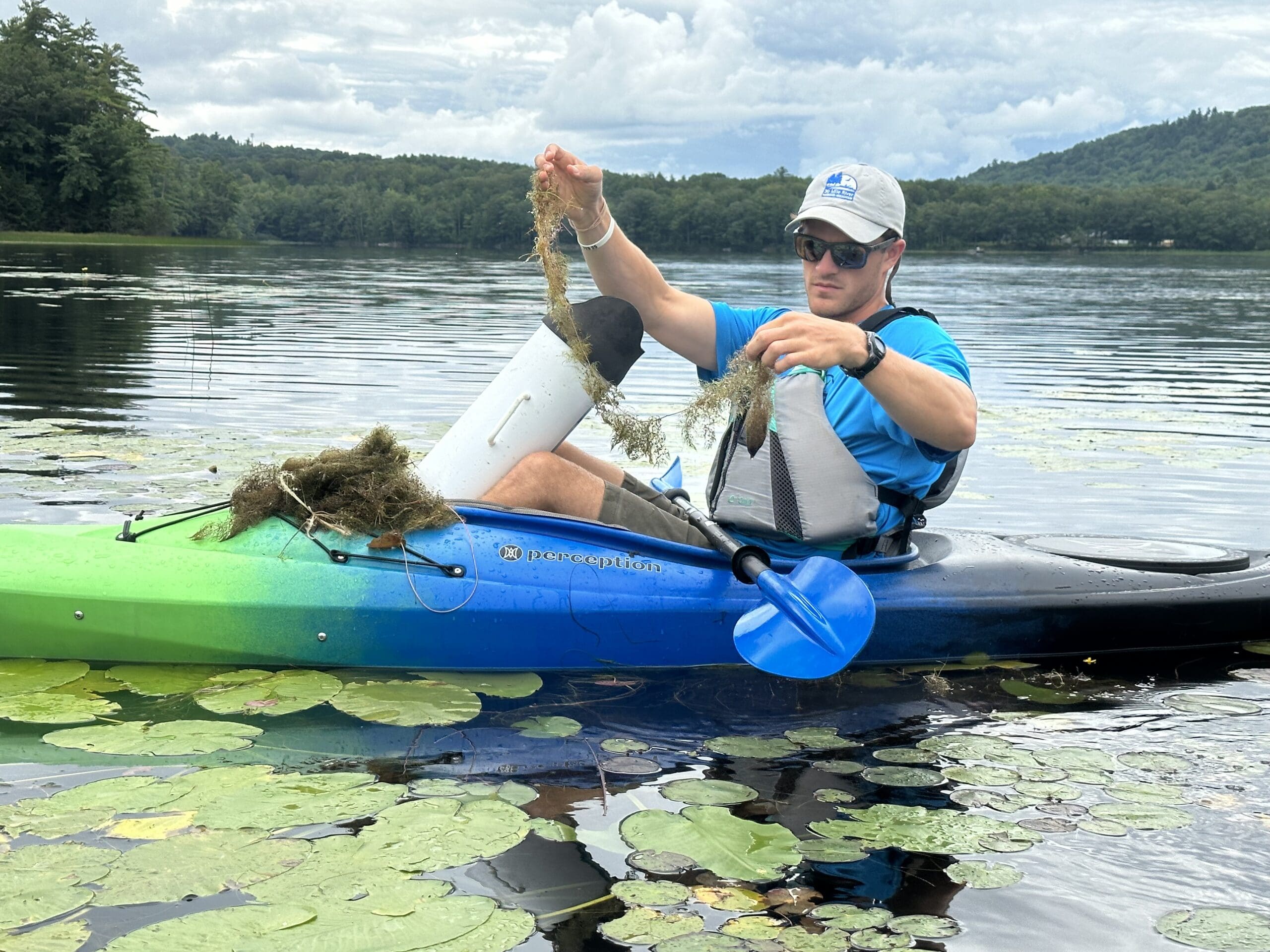 Invasive species are plants, animals, or other living things not native to an ecosystem and cause economic and environmental harm. In lakes, ponds, and streams invasive species can grow and spread rapidly, crowding out native species by taking up space, blocking sunlight, altering water quality, and disrupting natural habitats. AIS infestations also impact recreation and shorefront property values.